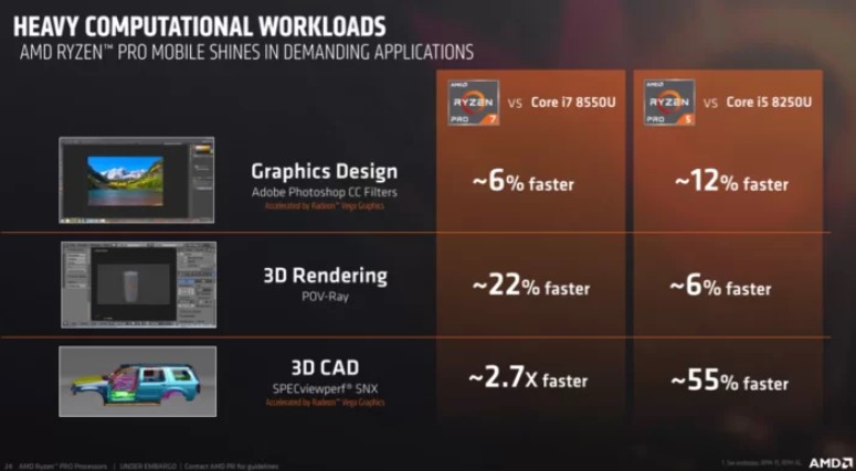 Salah satu keuntungan dari seri ini adalah kekuatan core komputasi Zen yang dipasangkan dengan grafis terintegrasi berdasarkan arsitektur Radeon Vega. AMD memperluas combo kuat ke laptop dengan prosesor Ryzen Mobile pertama dan mengumumkan di CES bahwa chip ini juga akan datang dalam rasa komersial Ryzen Mobile PRO yang kini memulai debut hari ini.