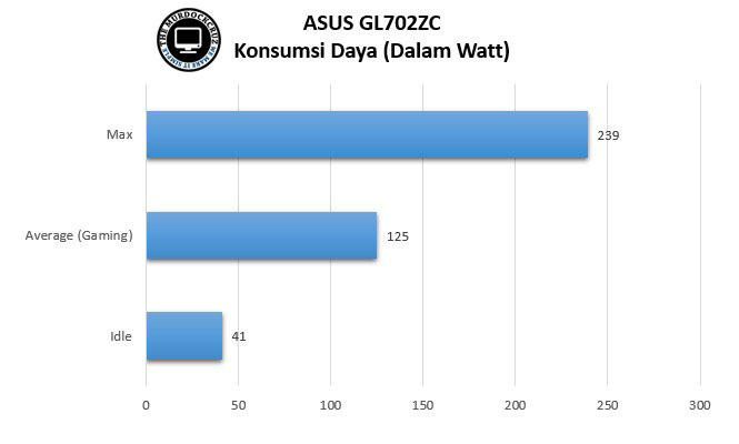 Sedangkan untuk konsumsi daya, juga bisa dikatakan merupakan sesuatu yang tentu saja akan menjadi hal wajar, ketika kekuatan monster didalamnya hadir. Tentunya AMD Ryzen 7 1700 membawa pilihan TDP 65W akan membawa nilai baterai menipis, dimana rata2 konsumsi daya akan memakan hingga 125W untuk performa gaming.