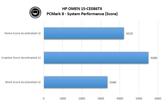 Bagaimana Dengan sistemsecara keseluruhan? Dibawah ini kami hadirkan beberapa tes dengan aplikasi PCMark 8 untuk menunjukan seberapa baik sistem mampu memberikan performa untuk segala kegiatan yang bisa dihadirkan pada laptop gaming ini. PCMark 8 tentu merupakan salah satu aplikasi handal untuk menguji kinerja semua jenis PC, mulai dari tablet hingga desktop. Dengan lima uji benchmark terpisah dan pengujian ketahanan baterai, PCMark 8 membantu kita untukmenemukan perangkat yang menawarkan kombinasi sempurna antara efisiensi dan kinerja.