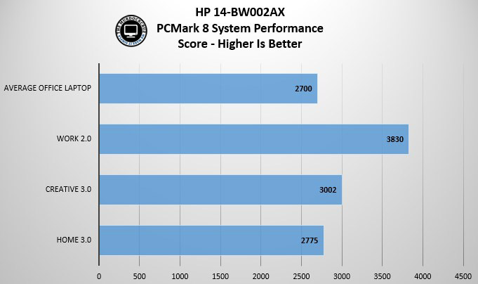 Melihat dari tes PC Mark8, pilihan ini sebenarnya berada di atas notebook Office pada umumnya, meskipun standar tersebut terhitung sejak tahun 2013 silam. Hasil skor yang dihasilkan oleh notebook ini juga cukup baik, termasuk untuk beberapa tes yang kami lakukan dalam PCMark 8.