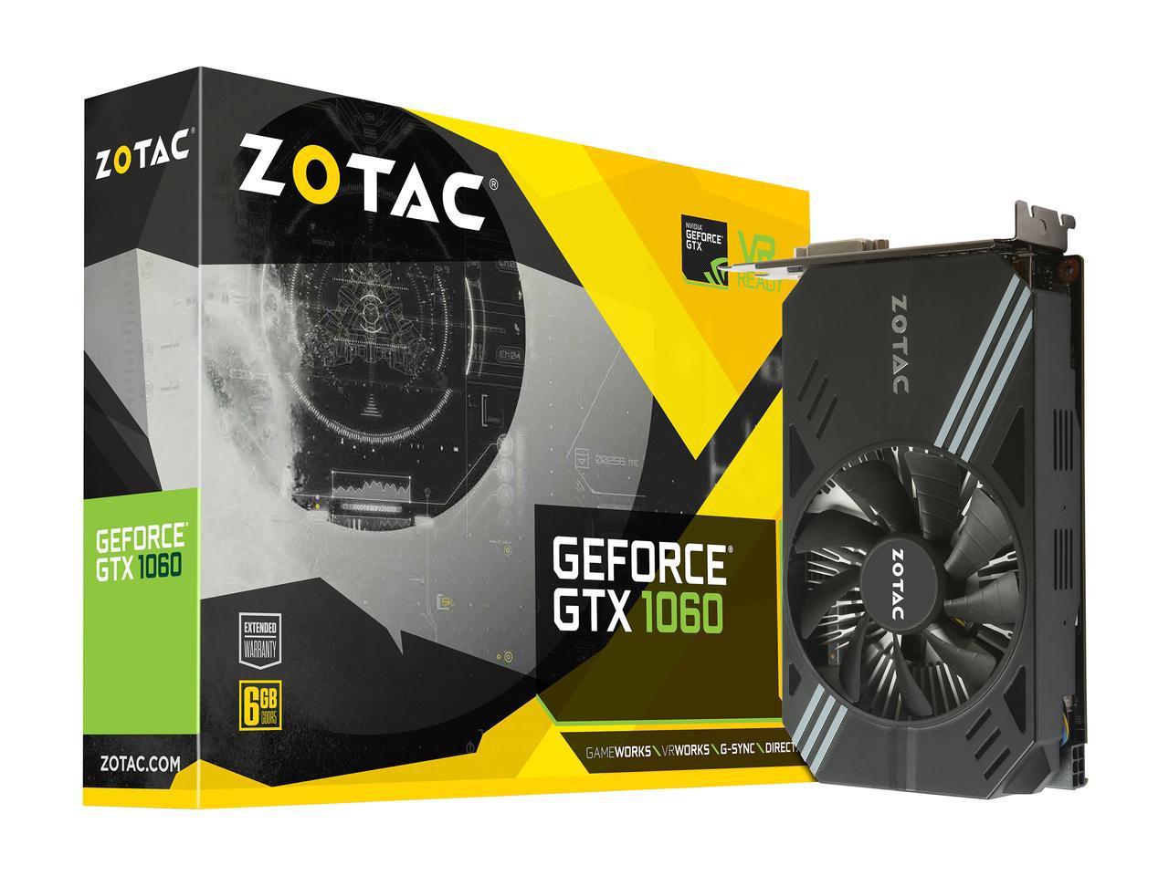 5 | ZOTAC GeForce GTX 1060 Mini | 6GB 192-bit GDDR5 Virtual Reality Ready Boost Clock 1708 MHz 1 x Dual-link DVI, 3 x DisplayPort (version 1.4), 1 x HDMI | Rp 4.670.000 (Beli) |