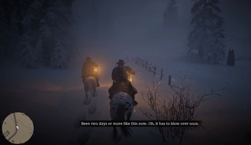 Badai salju menghantam kelompok Dutch saat mereka tengah dalam perjalanan untuk mencapai harapan semua orang, dan Arthur bersama rekan-rekan lainnya harus mencari sebuah tempat teduh untuk bisa beristirahat sejenak, terlebih lagi kondisi Abigail sudah semakin parah. Tidak ada waktu untuk berpikir, dan misi pertama saya bersama Arthur adalah pergi dengan sebuah kuda, mencari sebuah Shelter dalam suasana badai salju yang benar-benar terasa mencekam.