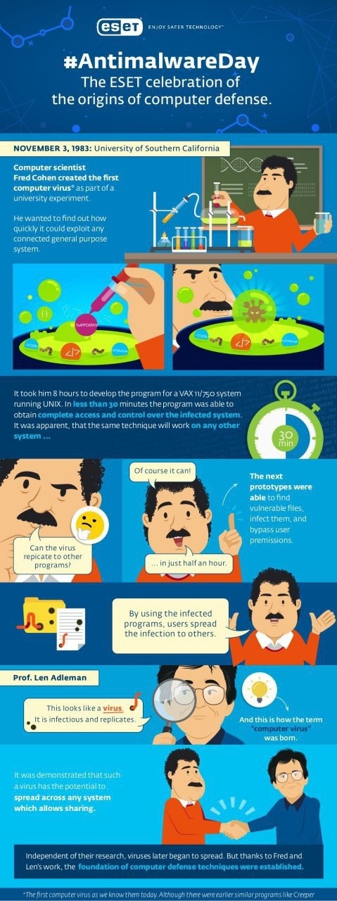 Untuk menghormati karya Dr. Cohen dan Prof. Adleman dan fondasi yang mereka tempatkan untuk penelitian ancaman komputer, ESETmemutuskan untuk mendeklarasikan tanggal 3 November sebagai Hari Antimalware pertama. ESET berharap dapat membuat tanggal ini dirayakan di seluruh dunia setiap tahun, sebagai hari yang akan membantu memperkuat pentingnya antimalware di dunia di mana komputer hanya sebesar genggaman tangan dan menjadi bagian yang tidak pernah terpisahkan dalam hidup manusia.