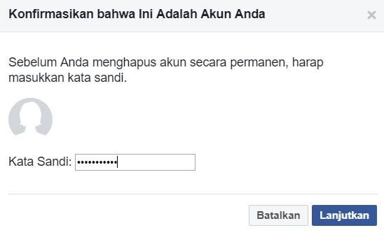- Setelah siap dengan semua hal tersebut, pilih Hapus dan masukan password akun Facebook kamu kembali.