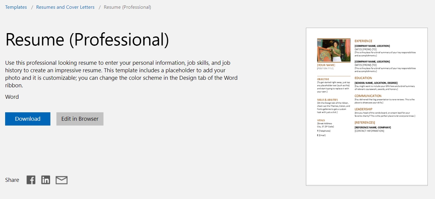 Contohnya, ketika kamu berencana untuk membuat sebuah kartu bisnis untuk kamu sendiri dengan waktu yang cepat, atau bahkan ketika kamu sedang memiliki tenggat waktu untuk membuat sebuah resume yang keren namun membutuhkan waktu yang cepat, hal yang perlu kamu lakukan adalah pergi ke Office Template, klik salah satu contohnya, kemudian unduh atau edit langsung di browser.