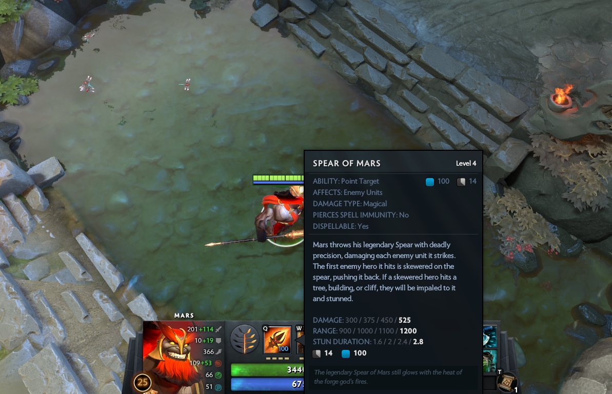 Beberapa skill lain yang dibawa oleh karakter terbaru di DOTA 2 itu juga memiliki kemampuan yang efektif bagi pemain, termasuk Spear Of Mars, dimana tombak hero Melee tersebut bisa ditembakan dengan jarak yang cukup jauh. Dan ketika terkena musuh, ia akan terbawa oleh tombak tersebut, Impaled dan stunned hingga maksimum 2.8 detik.