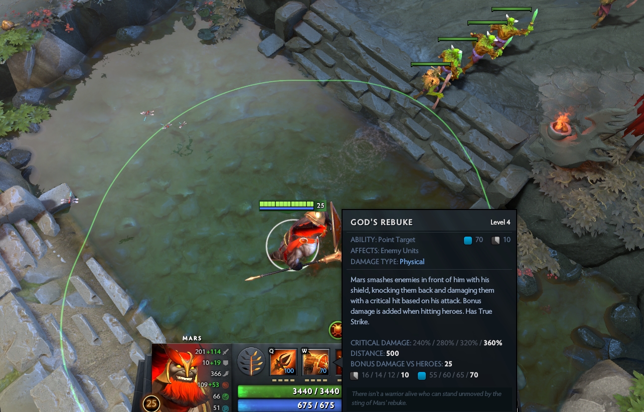 Kemudian hadir pula skill God’s Rebuke, dimana Mars memiliki kemampuan untuk menghancurkan sejumlah musuh di bagian depan dengan Bulkwark, termasuk juga membuat mundur dengan sejumlah pukulan kritis dan membawa fitur True Strike. Ini bisa menjadi senjata andalan kamu, bahkan memiliki bonus damage ketika berhadapan dengan Hero musuh hingga 25 damage.