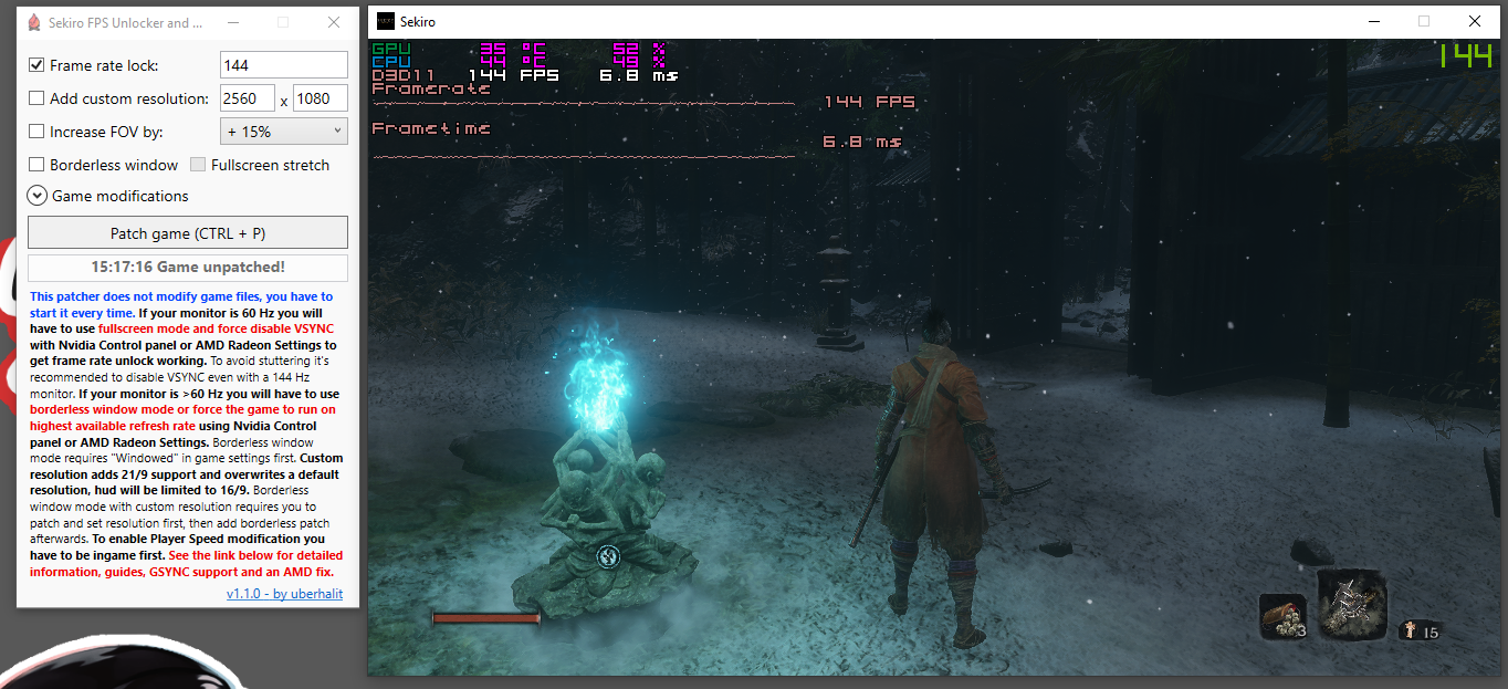 Ada banyak fitur yang cukup menyenangkan, meskipun kamu mungkin perlu melihat lebih detail mod tersebut disini, khususnya mengenai beberapa fitur extra maupun sejumlah persyaratan tentang tata cara kerja mod ‘Sekiro FPS unlock and more’.