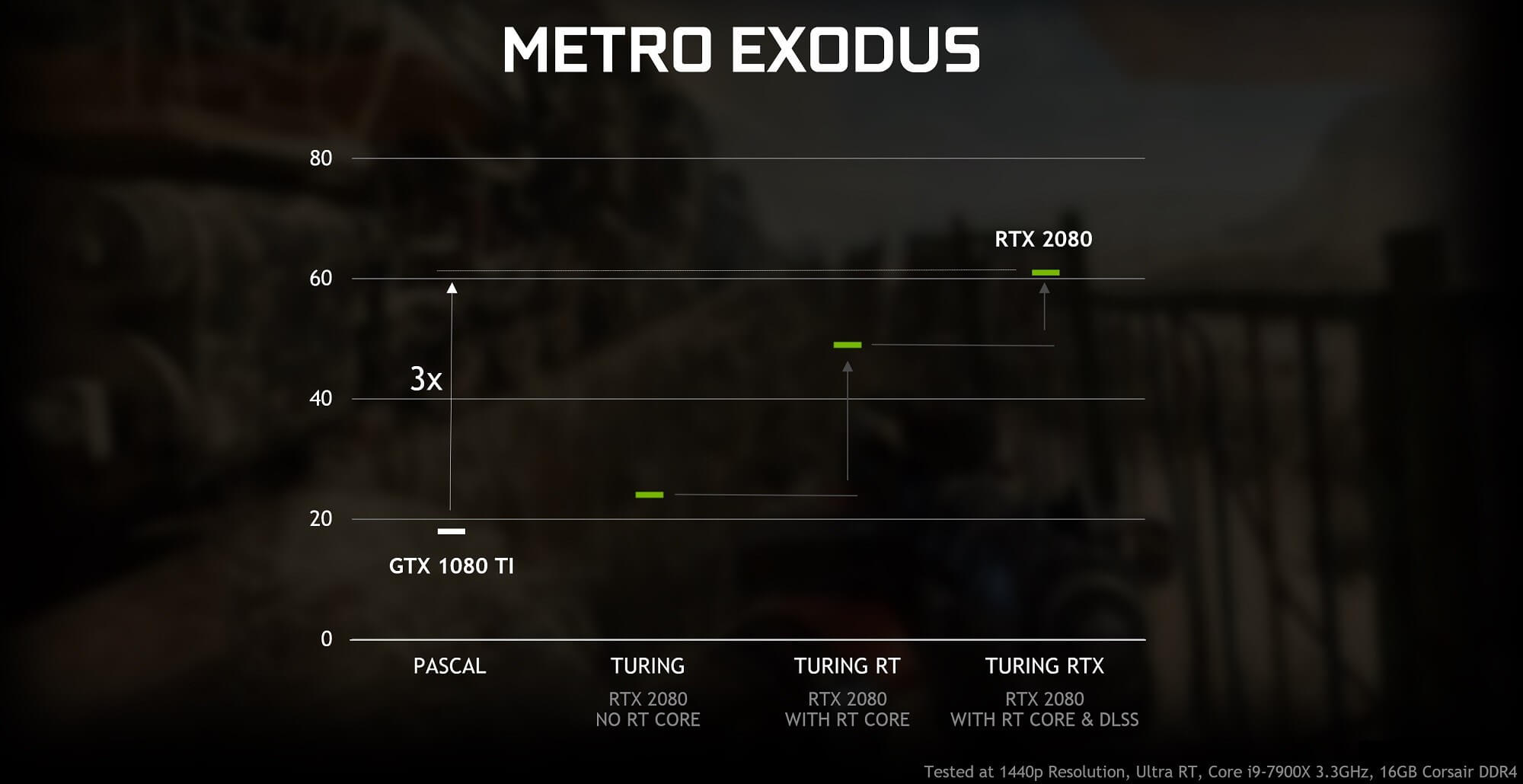 Contohnya, sebagaimana apa yang diungkap oleh Techspot, menggunakan Core i9-7900K dan GTX 1080 Ti pada resolusi 1440p, Metro Exodus, yang menggunakan iluminasi global yang dilacak dengan sinar waktu nyata, bahkan tidak dapat mencapai 20 fps. Hal-hal sedikit membaik dengan Shadow of the Tomb Raider, yang datang pada sekitar 30 fps, dan efek penelusuran sinar Battlefield V yang kurang menuntut berarti 50-60 fps mungkin.