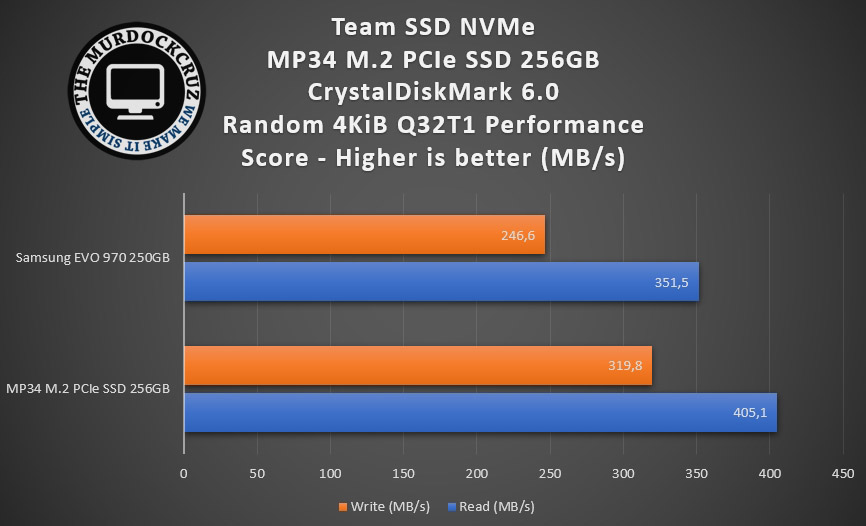 Kinerja Random 4K bahkan jauh lebih baik, dimana seri ini mampu memberikan kinerja hingga 405.1 MB/s untuk kecepatan baca dan hingga 319.8 untuk kecepatan tulis, yang sedikit melebihi kinerja dari apa yang bisa ditawarkan oleh Samsung EVO 970.