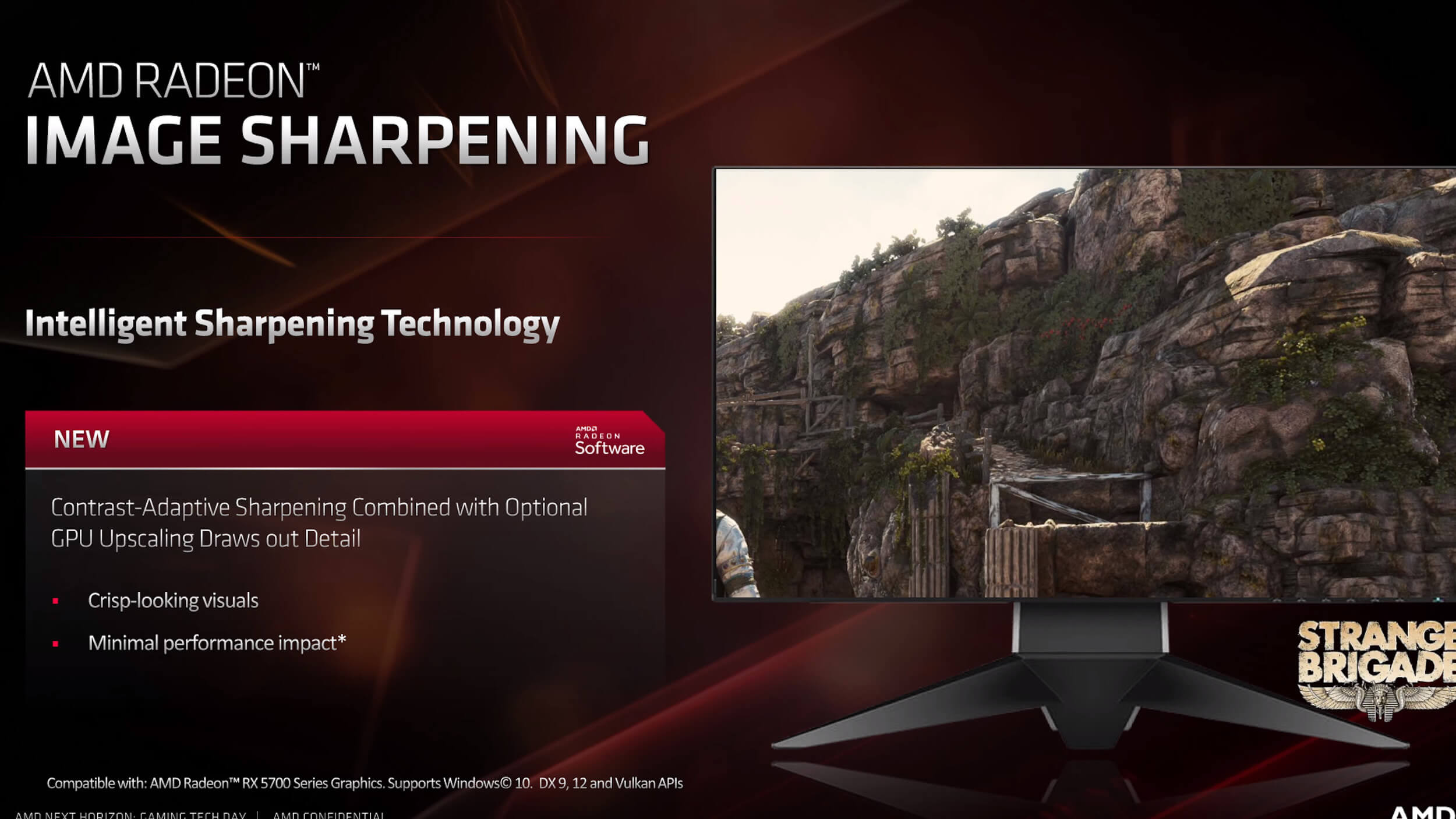 Dan yang terakhir namun yang pasti adalah kehadiran AMD Radeon Software Adrenaline 2019 Edition versi 19.7.1 yang akan diluncurkan 7 Juli bulan depan, dimana mereka akan memperkenalkan AMD Radeon Image Sharpening, teknologi penajaman cerdas yang terlihat jauh lebih menarik daripada teknologi DLSS Nvidia.