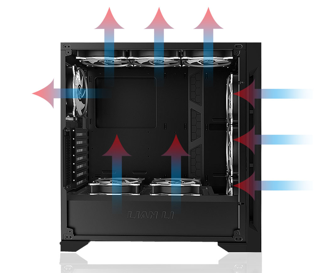 Lian Li Lancool One diklaim memiliki sirkulasi udara terbaik, bukan saja dari jumlah fan yang bisa dihadirkan, namun juga tingkat airflow dengan jalur tiga dimensi. Intinya, sisi pendinginan juga bisa menjadi nilai extra bagi pengguna untuk menjaga komponen tetap stabil, bahkan untuk waktu yang sangat lama sekalipun.