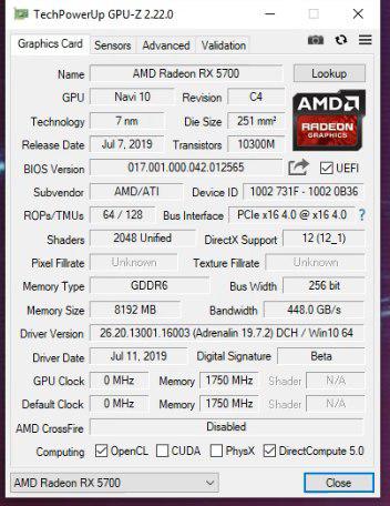 | Spesifikasi | AMD Radeon RX 5700 |