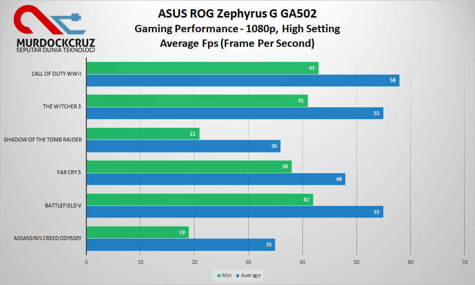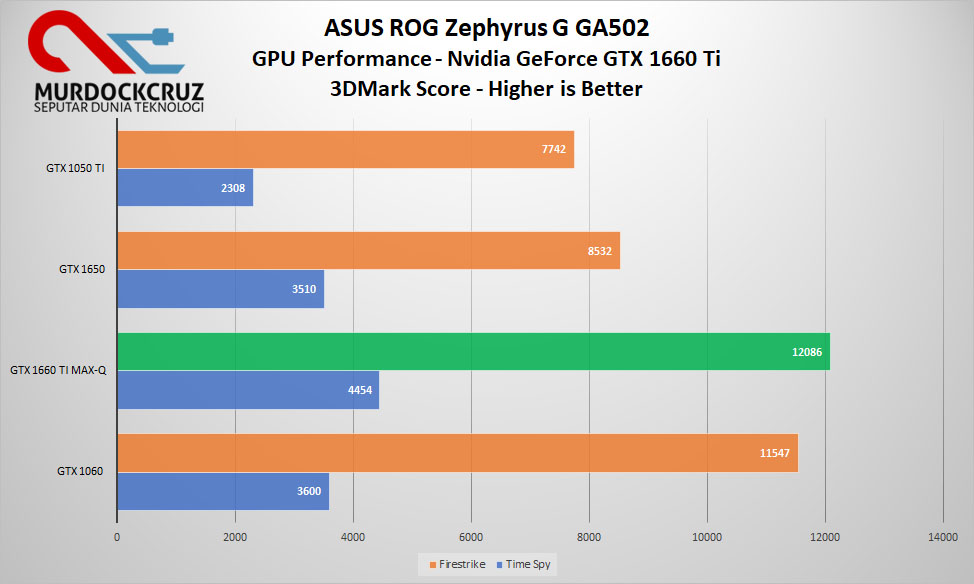 Secara keseluruhan, VGA yang disajikan oleh laptop ini sepenuhnya bisa memberikan kinerja gaming jauh lebih baik jika dibandingkan dengan laptop kisaran harga dibawah 20 jutaan, termasuk GTX 1050 Ti atau bahkan GTX 1060.