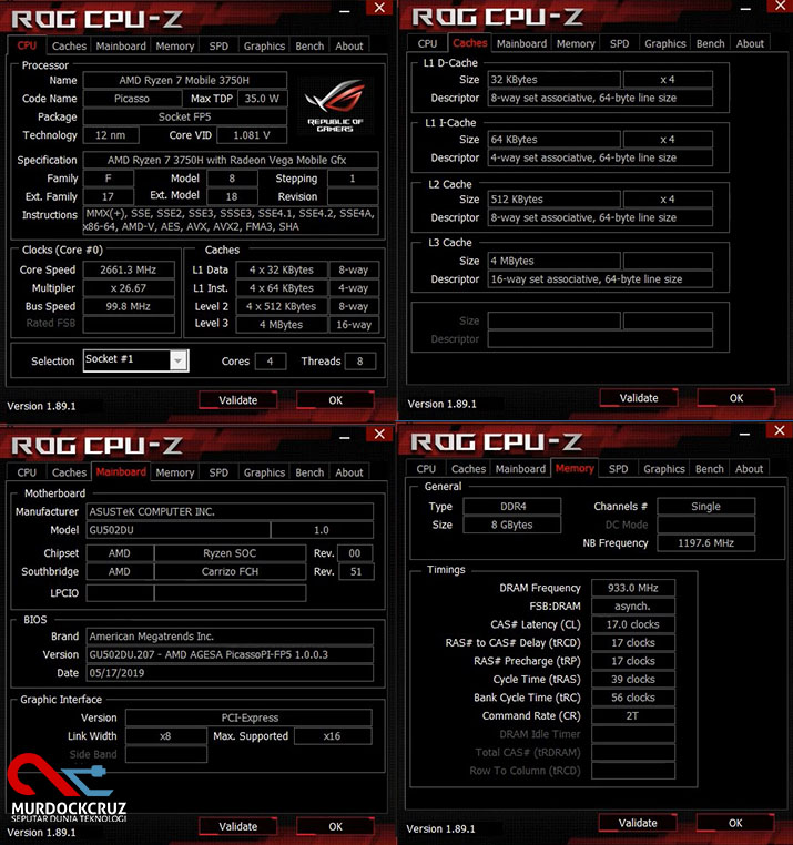 | Spesifikasi | AMD Ryzen 7 3750H |