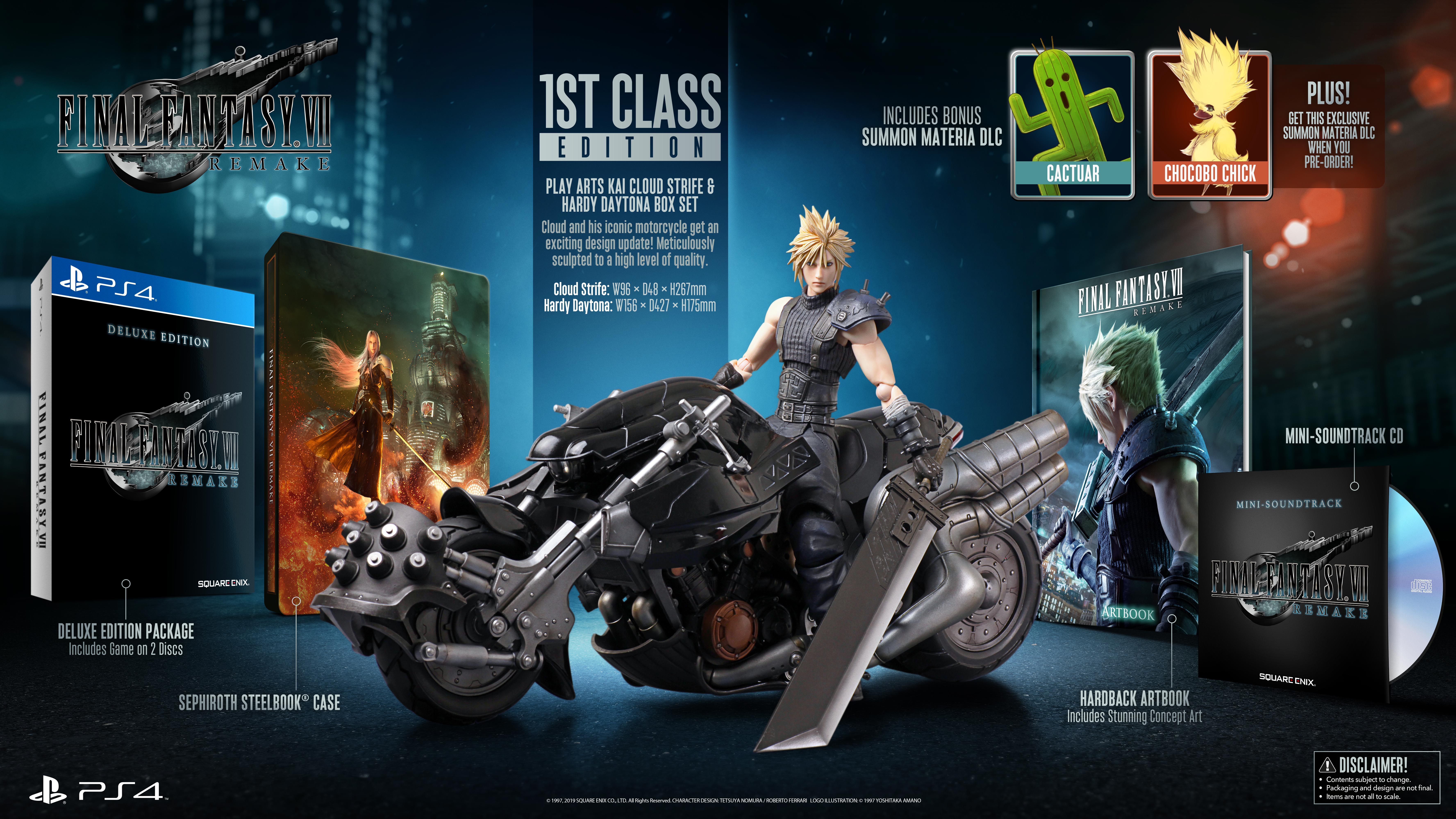 Square Enix sendiri sudah mengungkap hal tersebut, plus rincian dan konfirmasi semua edisi fisik PlayStation 4 Final Fantasy VII Remake, termasuk Edisi Deluxe dan 1st class edition. Hanya saja, pre-order fisik belum dijadwalkan dan baru akan diumumkan segera, meskipun masih cukup lama.