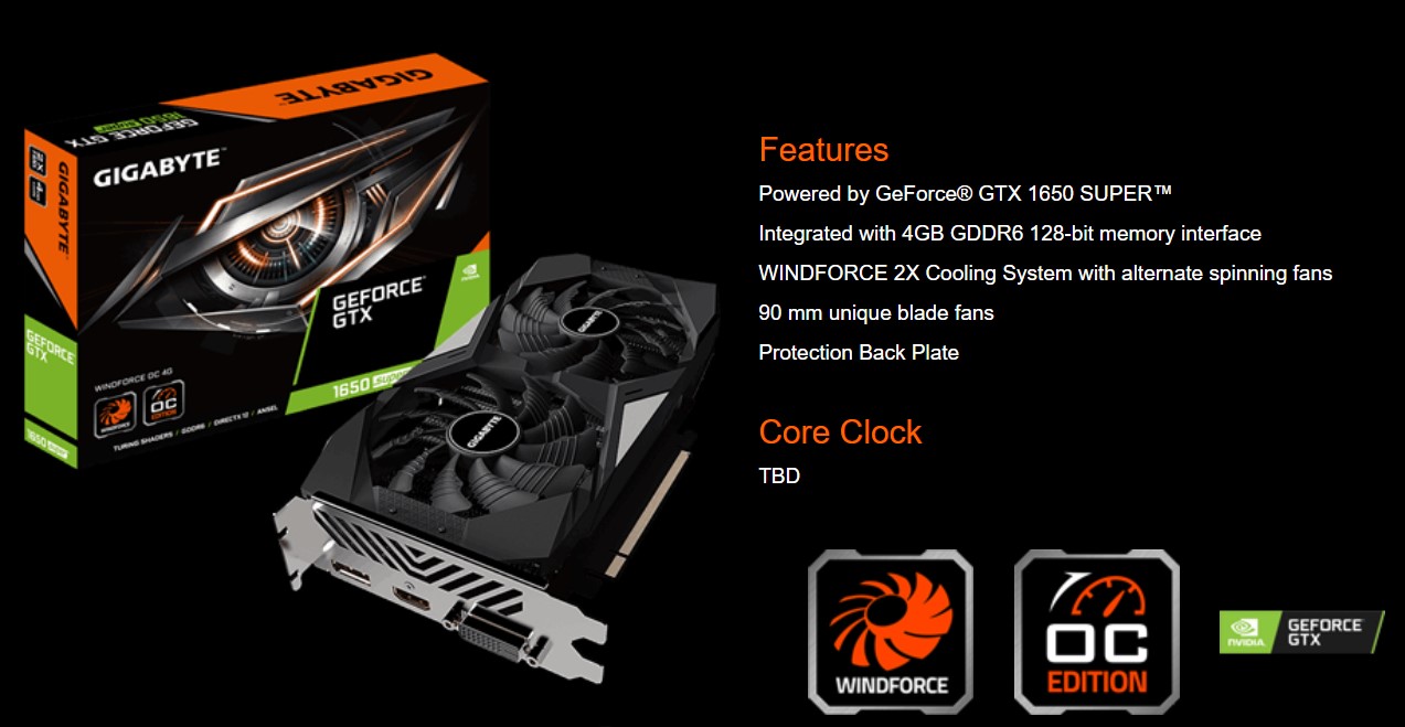 Ada total 3 pilihan seru yang bisa diungkap, termasuk juga seri GTX 1650 SUPER yang juga ikut terlibat dalam pengumuman VGA terbaru dari Gigabyte ini, diantaranya adalah GeForce® GTX 1660 SUPER ™ GAMING OC 6G, GeForce® GTX 1660 SUPER ™ OC 6G, GeForce® GTX 1660 SUPER ™ MINI ITX OC 6G dan GeForce® GTX 1650 SUPER ™ WINDFORCE.