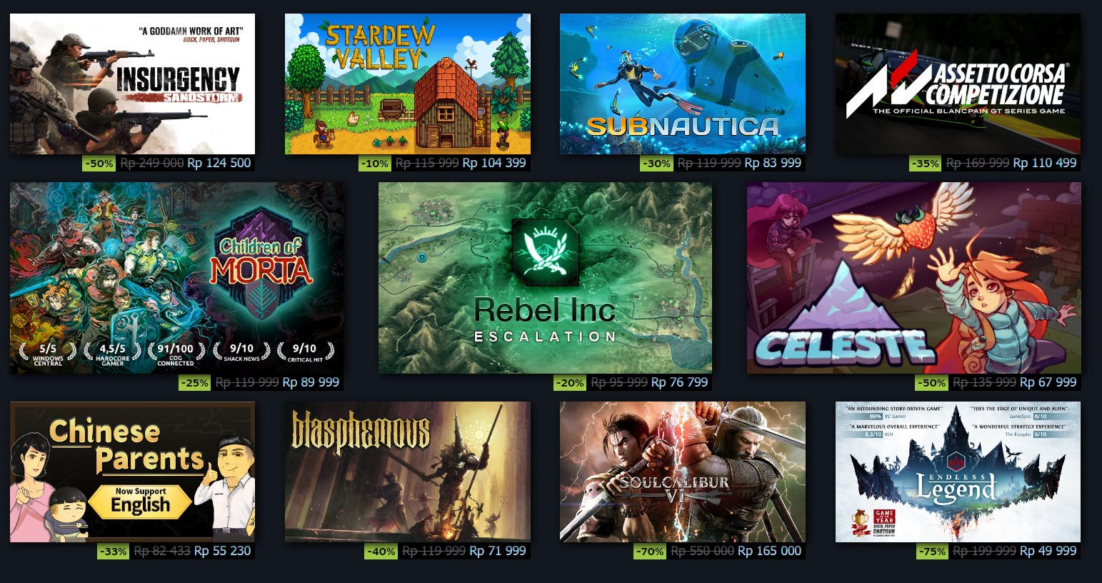 Steam Autum Sale 2019 masih berlaku hingga esok hari atau tanggal 3 Desember 3029. Dan ketika kalian sedang nyari game seru dengan penawaran harga terbaik, maka Steam masih menawarkan banyak pilihan game murah, bahkan beberapa game terbaru kini memiliki diskon hingga 70% lebih.