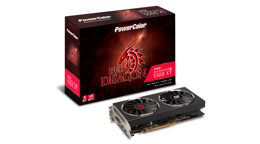 Terakhir adalah PowerColor yang bisa dibilang punya pilihan alternatif terbaik untuk budget user, namun masih memiliki kemampuan untuk kinerja hebat. Ada dua pilihan yang hadir dari produsen, yaitu versi RX 5500 XT 8 GB and PowerColor RX 5500 XT 4 GB, dimana keduanya didasarkan pada keluargan Red Dragon.