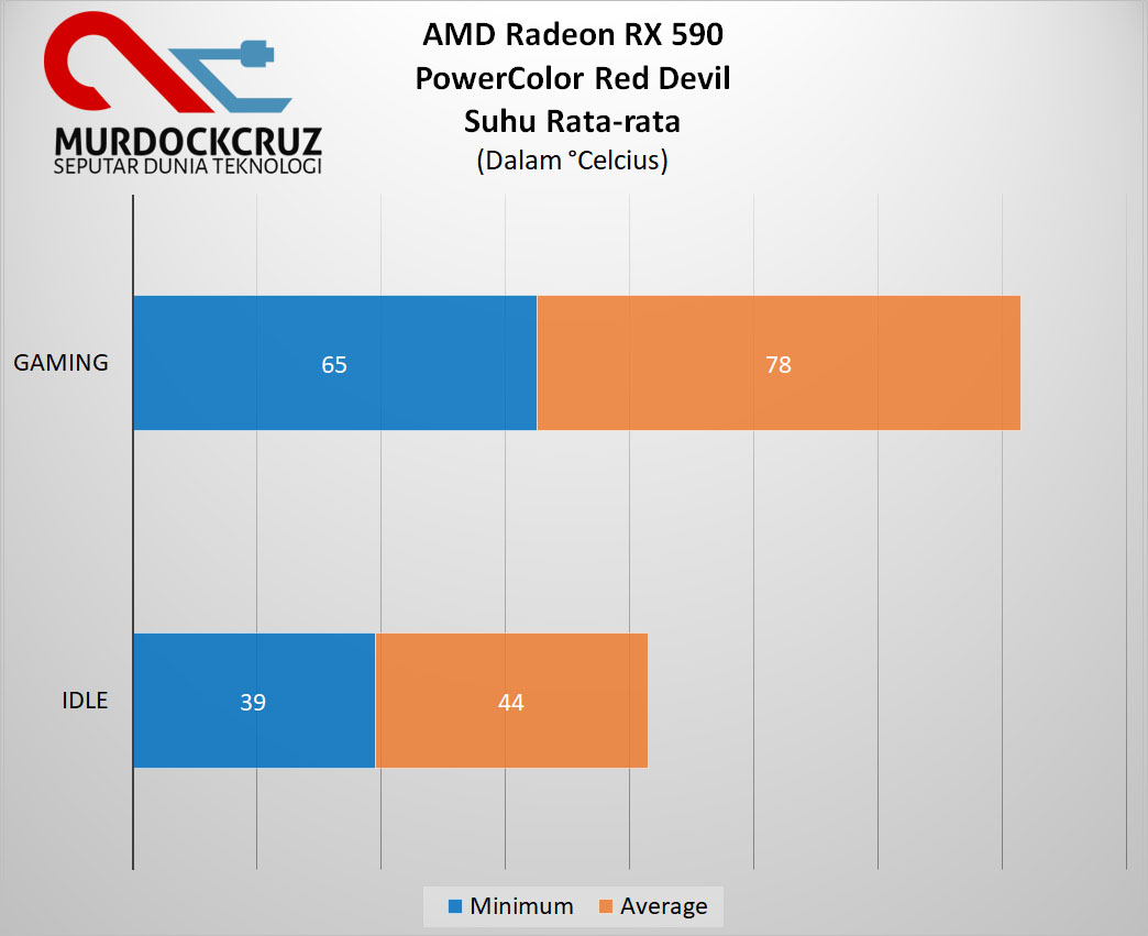 Suhu yang ditawarkan PowerColor Red Devil pada dasarnya sangat baik dan mencukupi, bahkan untuk kegiatan gaming terlama sekalipun. VGA ini bahkan mampu menghasilkan suhu normal dengan rata-rata hingga 78°Celcius, dan itu terhitung cukup baik. Hanya saja, fan agak sedikit berisik saat sedang bekerja tinggi, meskipun masih terhitung normal juga sih.