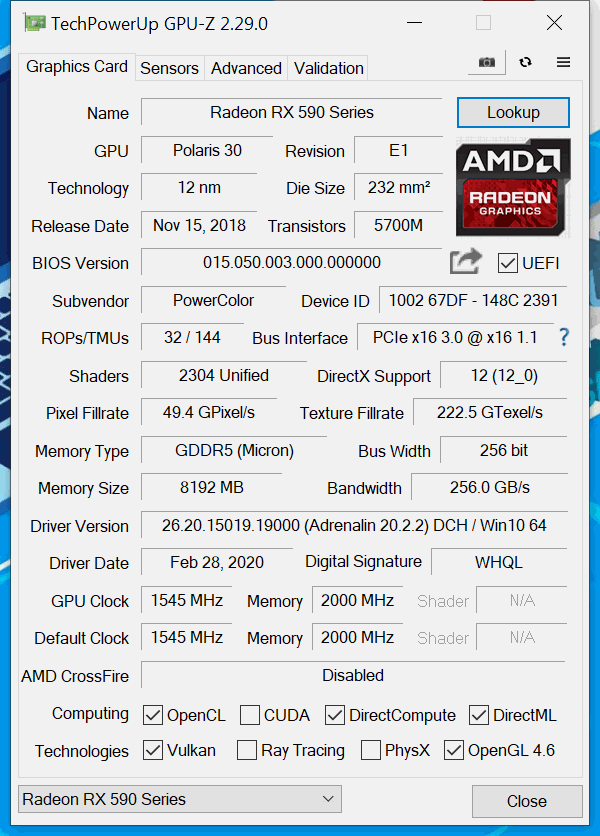 | Spesifikasi | PowerColor RX 590 Red Devil |