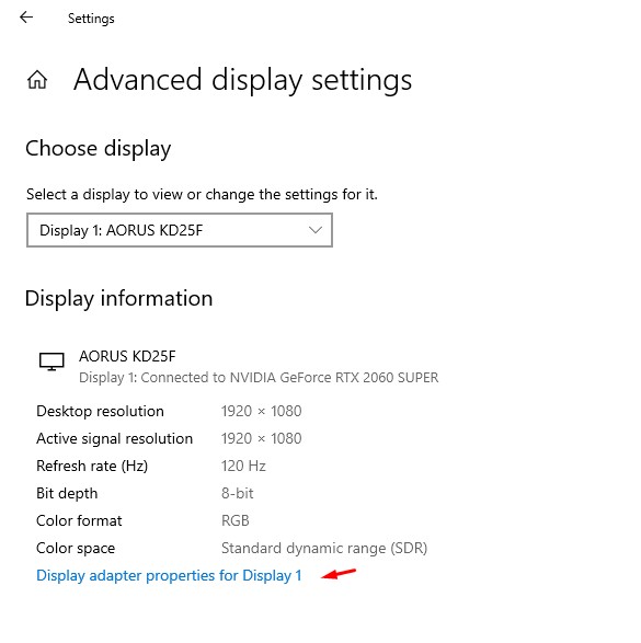 - Di bagian ini, klik opsi Display Adapter For Display 1 (kalian juga bisa atur pilihan monitor kedua untuk aktifin hal serupa).