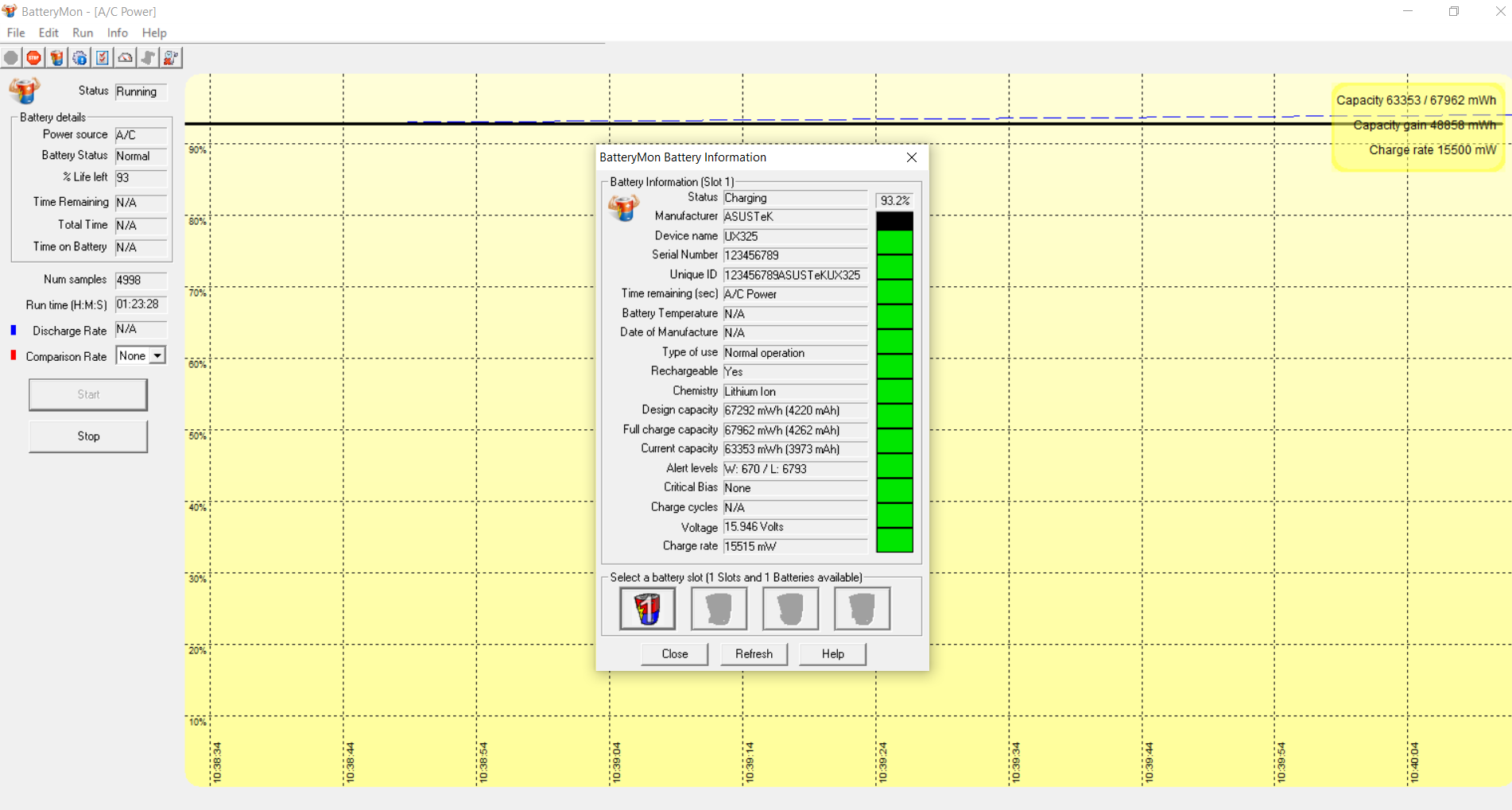ASUS ZenBook 13 UX325 itu sendiri bawa baterai internal yang cukup solid dengan kapasitas 4220mAH. Charging batere pada laptop ini melalui port USB-C Thunderbolt dan dukung fitur quick charge. Dan dalam kinerja nyata, laptop ini membutuhkan waktu hingga 1.20 menit dari 20% hingga 90%, dan itu cukup cepat. Sedangkan untuk kekuatan baterai itu sendiri, laptop ini bisa bekerja penuh hingga 7 jam 55 menit atau hampir 8 jam, khususnya ketika berkaitan dengan kasual work seperti pengetikan sambil dengerin musik, browsing maupun nonton video.