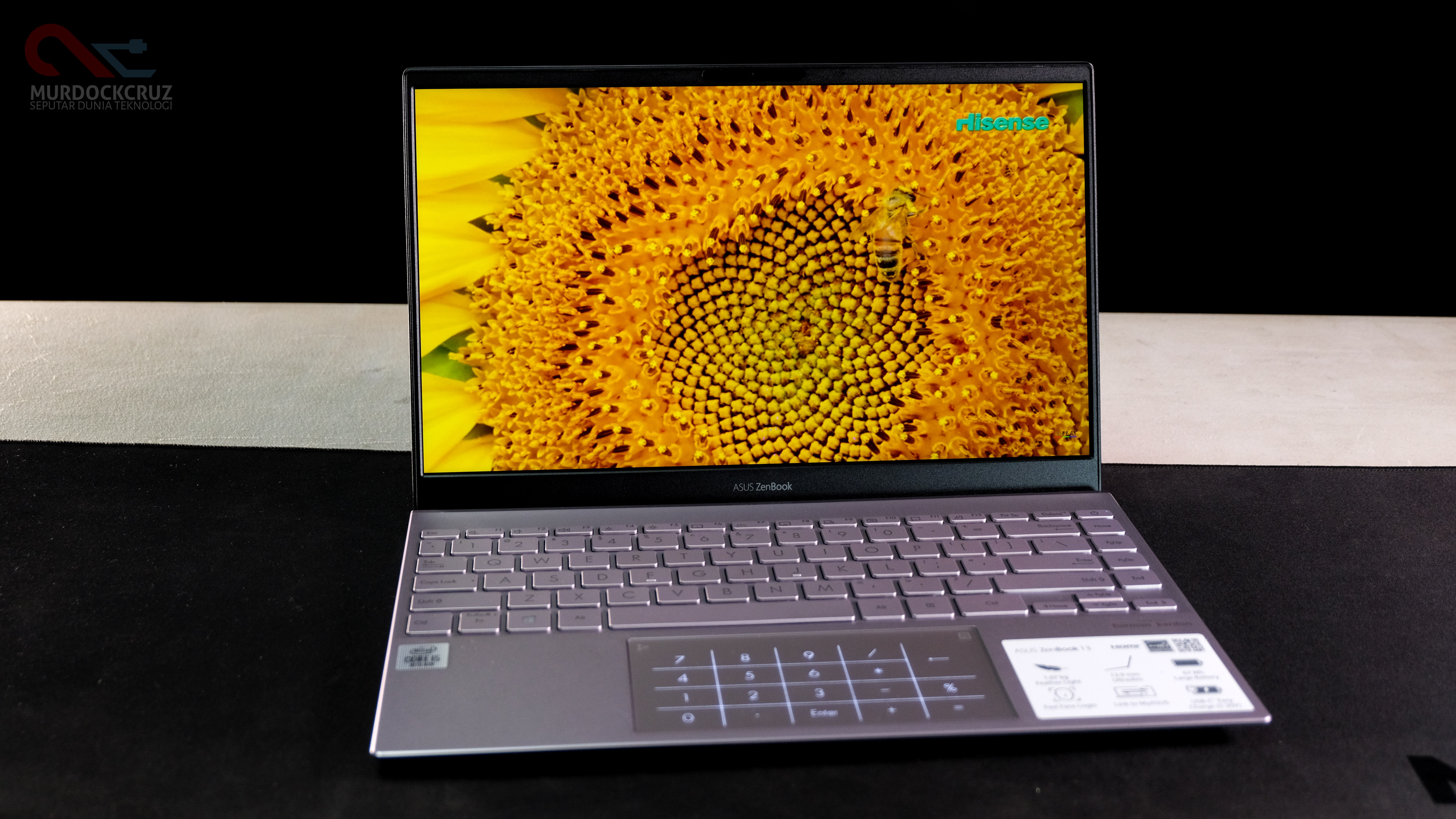 Nah, buat touchpad, produsen enggak ngasih fitur screenpad yang dulu penah kita bahas. Namun kini diganti dengan tombol khusus Numberpad. Kami rasa perubahan ini bisa berlaku lebih positif dengan fungsi yang jauh lebih bermanfaat. Jadi, ketika keyboard dirasa belum mencukupi dengan ketiadaan numpad, touchpad extra ini bisa menyempurnakannya. Cuman secara utuh, touchpad yang hadir pada ZenBook 13 UX325 cukup nyaman buat dilalui, terlebih lagi memiliki bahan materi kaca yang solid dan kesan premiumnya masih melekat.