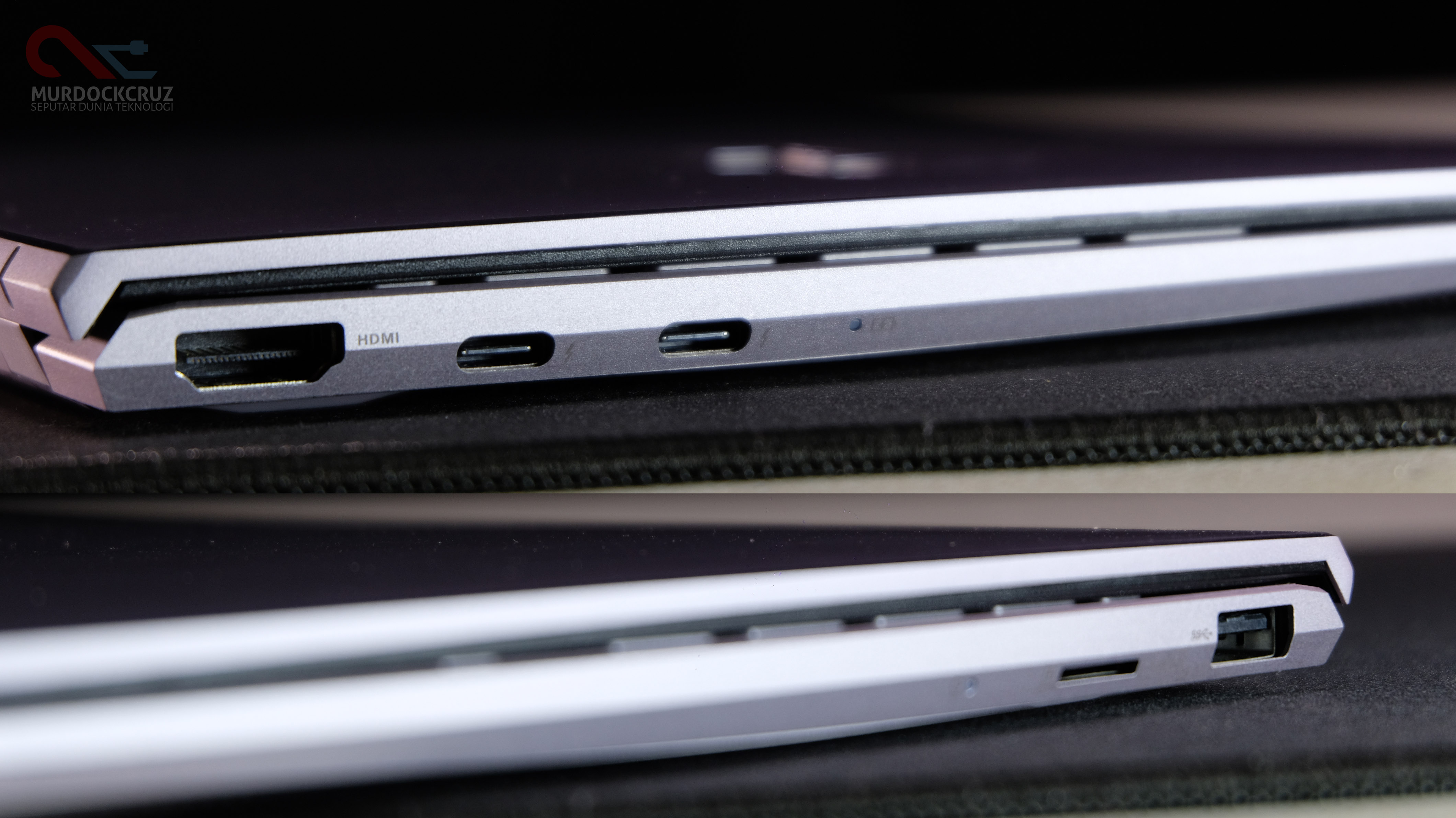 Konektivitas kini lebih disederhanakan dengan ketersediaan beberapa port inti, termasuk 2 port USB-C Thunderbolt 3 yang bisa memberikan transfer data tinggi hingga 40Gbps, salah satu port juga berlaku sebagai media charger untuk mengisi daya laptop. Sebuah port USB 3.2 Gen 1, sebuah port HDMI dan slot MicroSD Card. Simpel, tapi tinggi banget kalo diliat dari spek. Cuman kalo kalian punya banyak perangkat extra, maka kalian perlu beli perangkat extra agar semua peripheral bisa terpasang.
