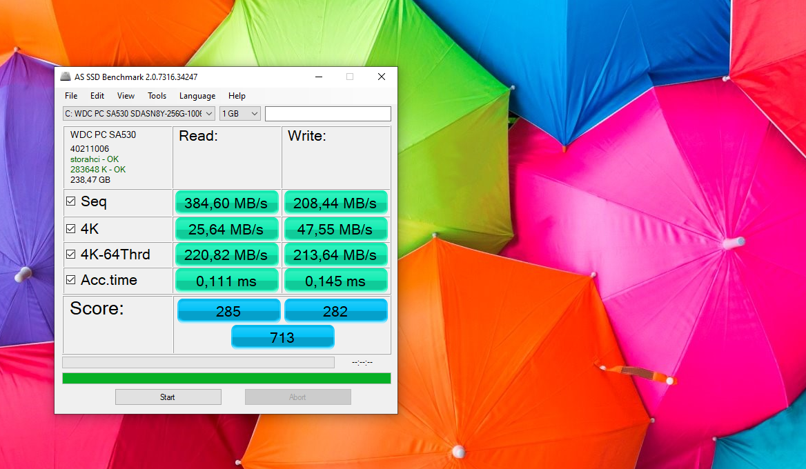 Bagaimana dengan storage? WDC M.2 SSD dengan kapasitas 256GB dan interface SATA III jadi pilihan utamanya. Performa yang ditawarin cukup lambat dengan write speed up to 384 MB/s dan write speed up to 208 MB/s. Mencukupi, setidaknya bisa lebih baik dibanding HDD dengan sistem loading operasi lebih cepat, tapi masih jauh dibanding kasual SSD SATA III.