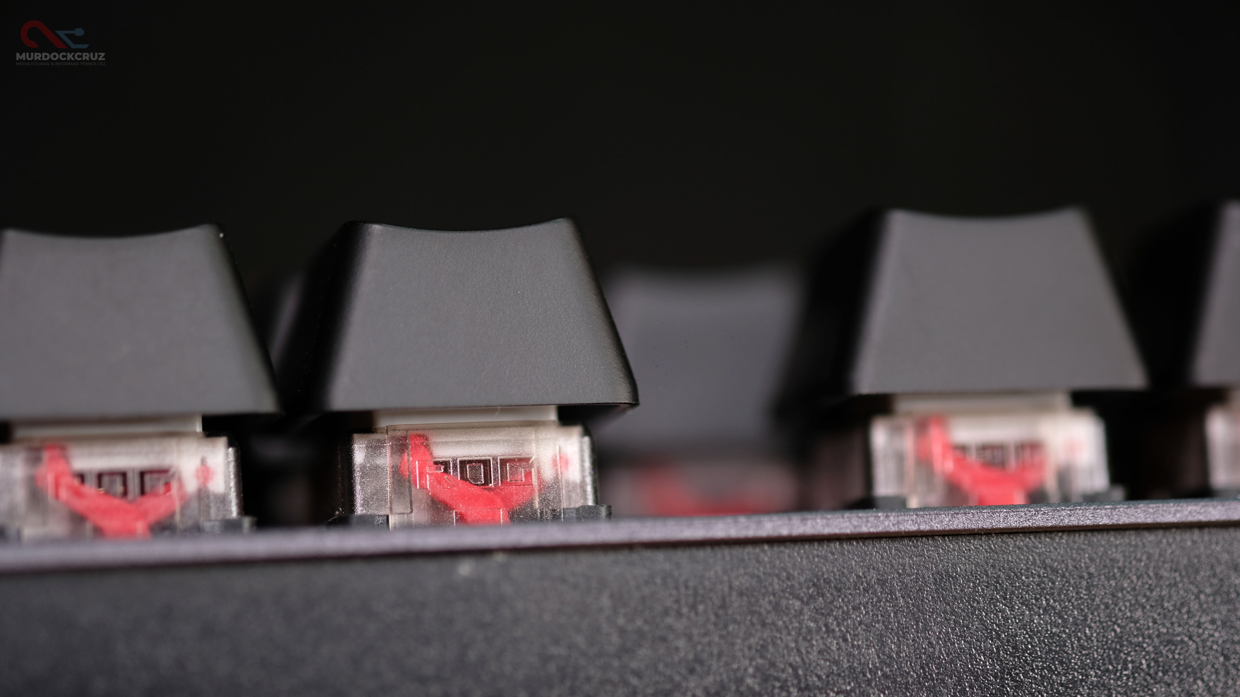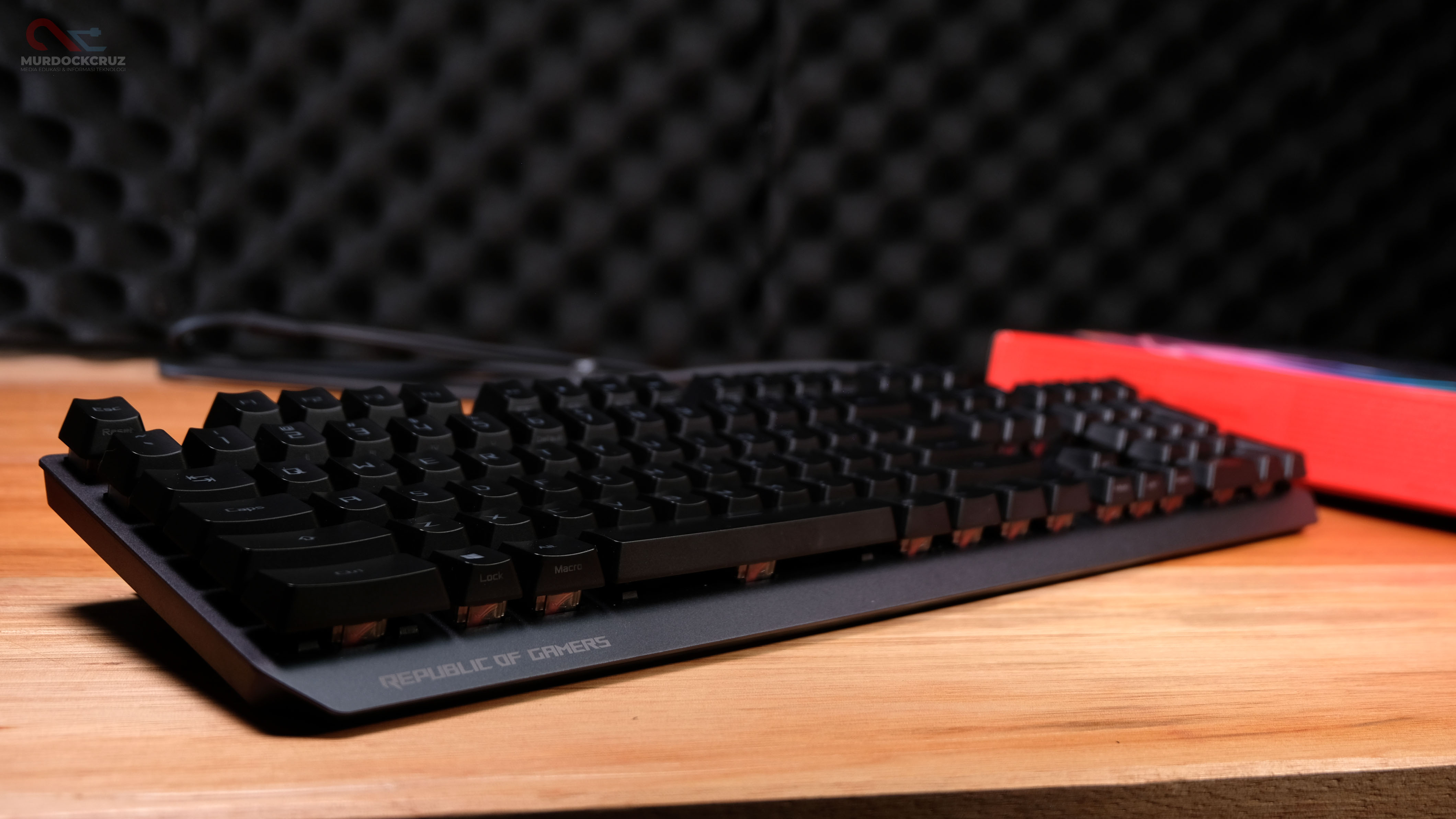Switch ini benar-benar istimewa dengan feel sangat nyaman untuk kegiatan extra seperti pengetikan, suara khas mekanik masih tetep ada, cuman enggak terlalu keras gitu. Bahkan smooth banget seperti saat nyoba brown switch dengan tingkat aktuasi yang bahkan enggak perlu keras neken tombol. Saking istimewanya, kalian bahkan bakal liat ada logo ROG dibagian switch yang enggak bisa ditawarin merk lain.