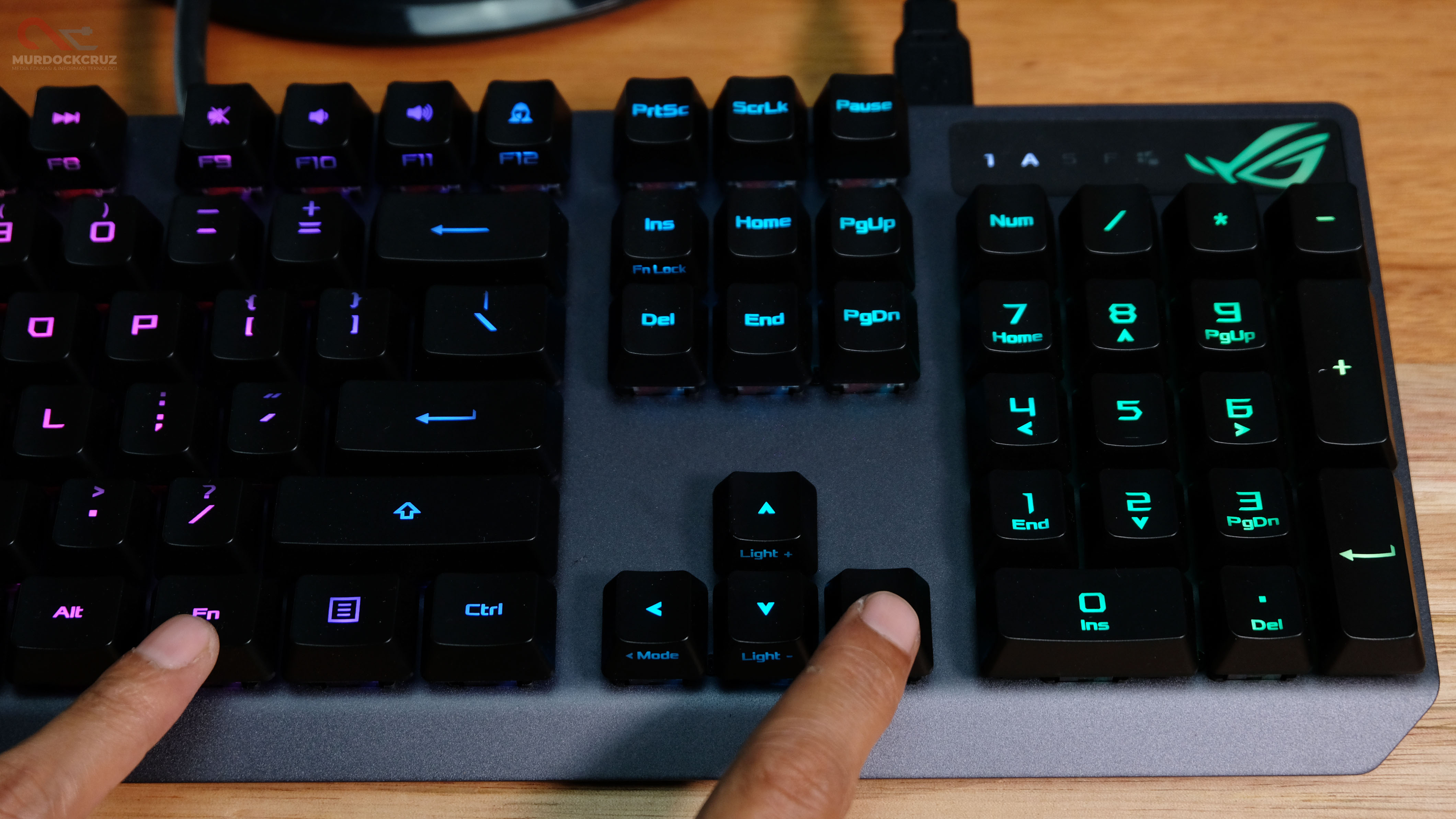 Setiap tombol yang hadir sebagaimana kita ungkap sebelumnya punya fitur RGB LED dengan central lighting buat penerangan extra, logo ROG backlit, maupun efek cahaya yang dapat disesuain. Disisi lain, kalian bisa ngatur banyak hal pada keyboard shortcut seperti ngatur kecerahan, play stop atau pause atau juga ngatur RGB lighting.