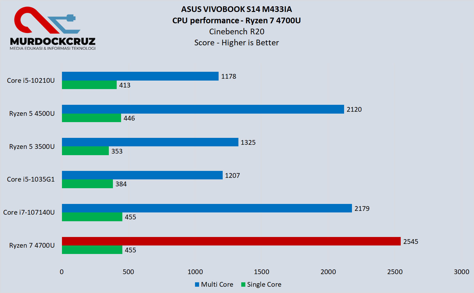 Sebagai contoh, pada tes cinebench R20, Ryzen 7 4700U mampu mengungguli prosesor terbaru Intel sekelas Core i7-10710u baik dalam kinerja single core maupun multi-core. Setidaknya, itu bisa jadi sesuatu yang menggoda buat kalian pertimbangin dalam kinerja maupun harga.