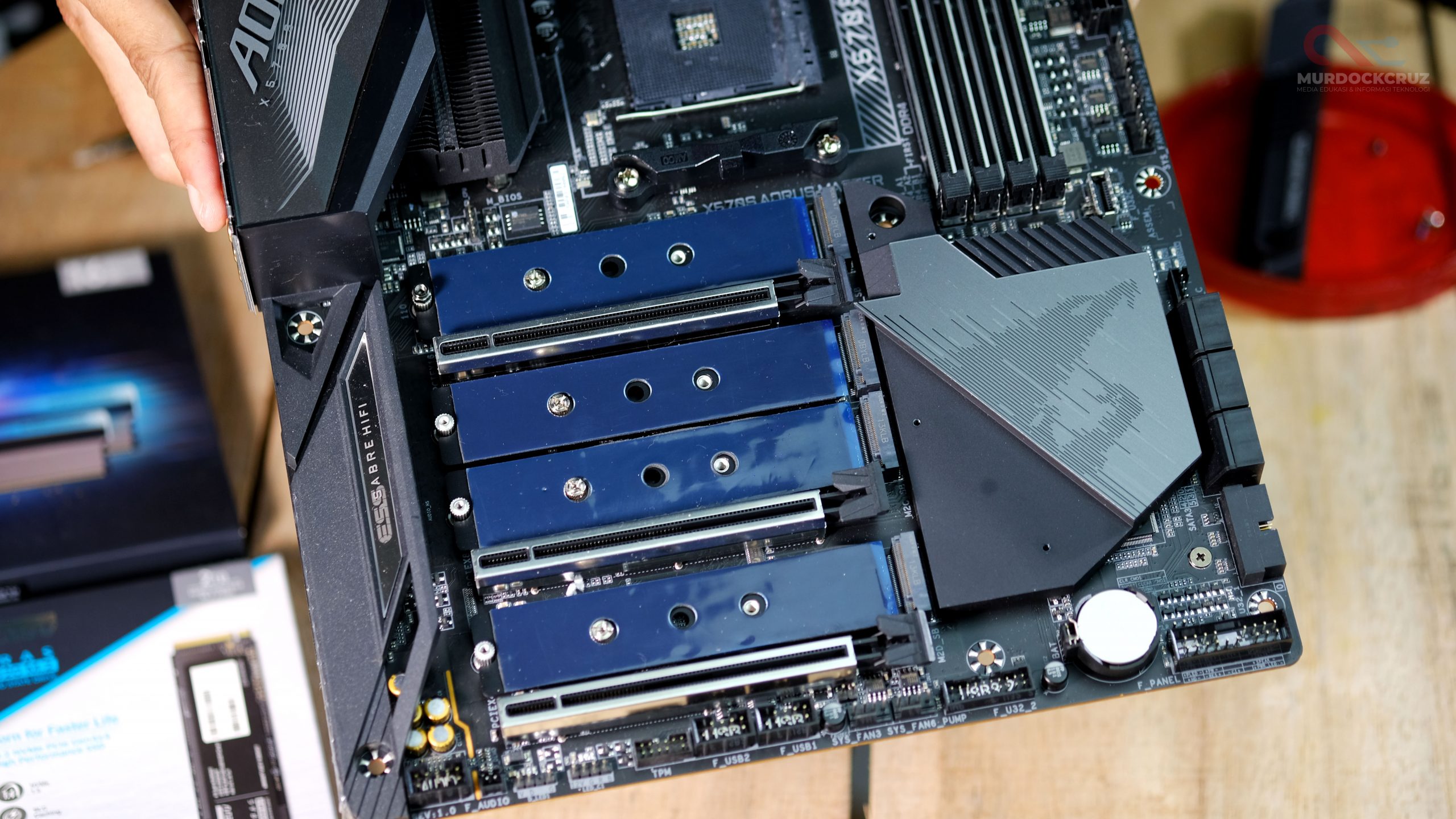 Ok, ada beberapa poin penting yang ditawarin X570S AORUS MASTER ini. Pertama dari desain, AORUS selalu bawa nilai lebih buat nambah estetika. Seperti advanced thermal guard dihampir semua bagian, termasuk bagian belakang mobo.