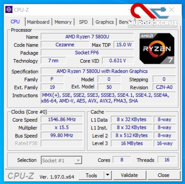 Tentu aja, Ryzen 7 5800U punya kekuatan 8 Core dan 16 threads, clockspeed up to 4.4Ghz, L3 cache 16MB dan default TDP 15W. Dibangun pada proses node 7nm, AMD ngeklaim kalo CPU ini punya efektifitas performa dan efisiensi daya terbaik.