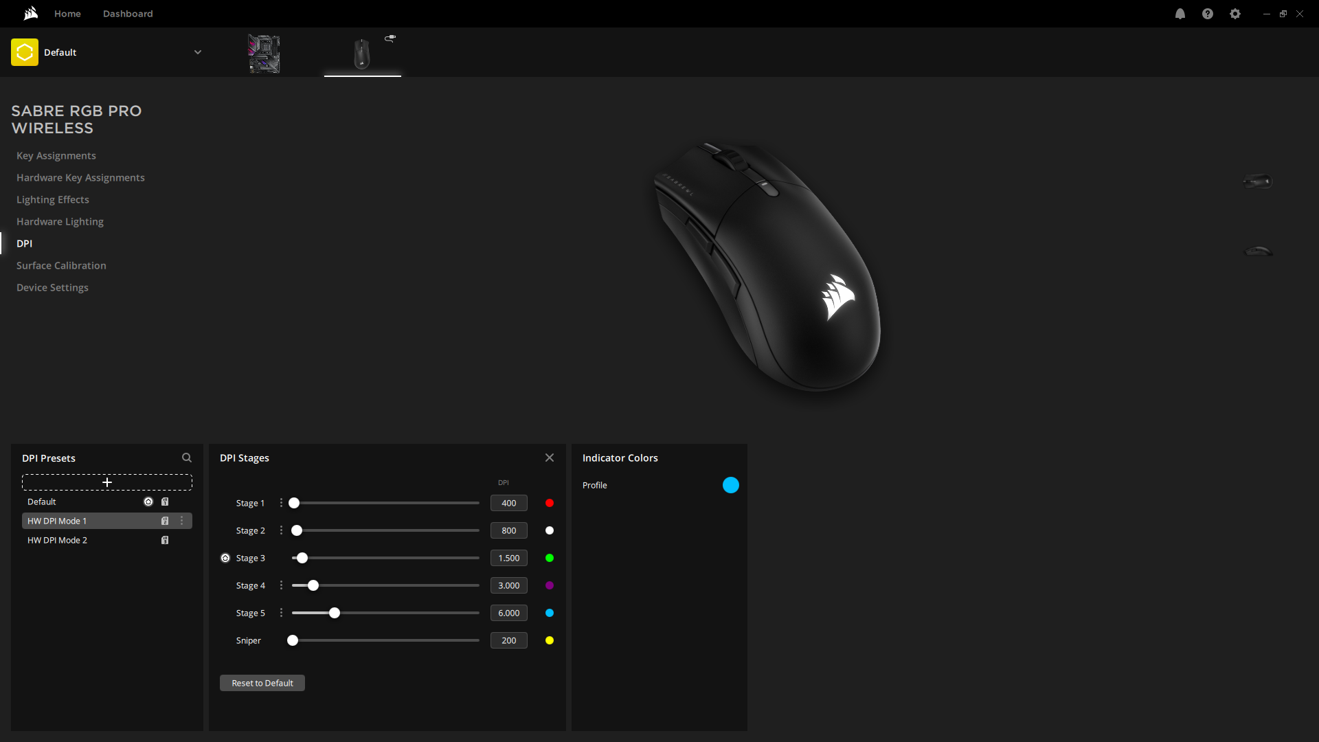 Nah, DPI Switch bakal memberikan akses cepat buat ngatur kecepatan mouse dan ada beberapa stage secara default. Warna indicator bisa jadi patokan. Misal merah, ini bakal ngatur DPI ke opsi terendah. Kalian juga bisa atur opsi DPI pake iCUE juga, entah jumlah DPI yang diinginkan atau warna indicator.