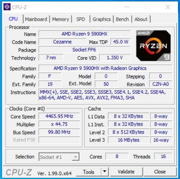 | Processor | AMD Ryzen™ 9 5900HX Mobile Processor (8-core/16-thread, 20MB cache, up to 4.6 GHz max boost) |