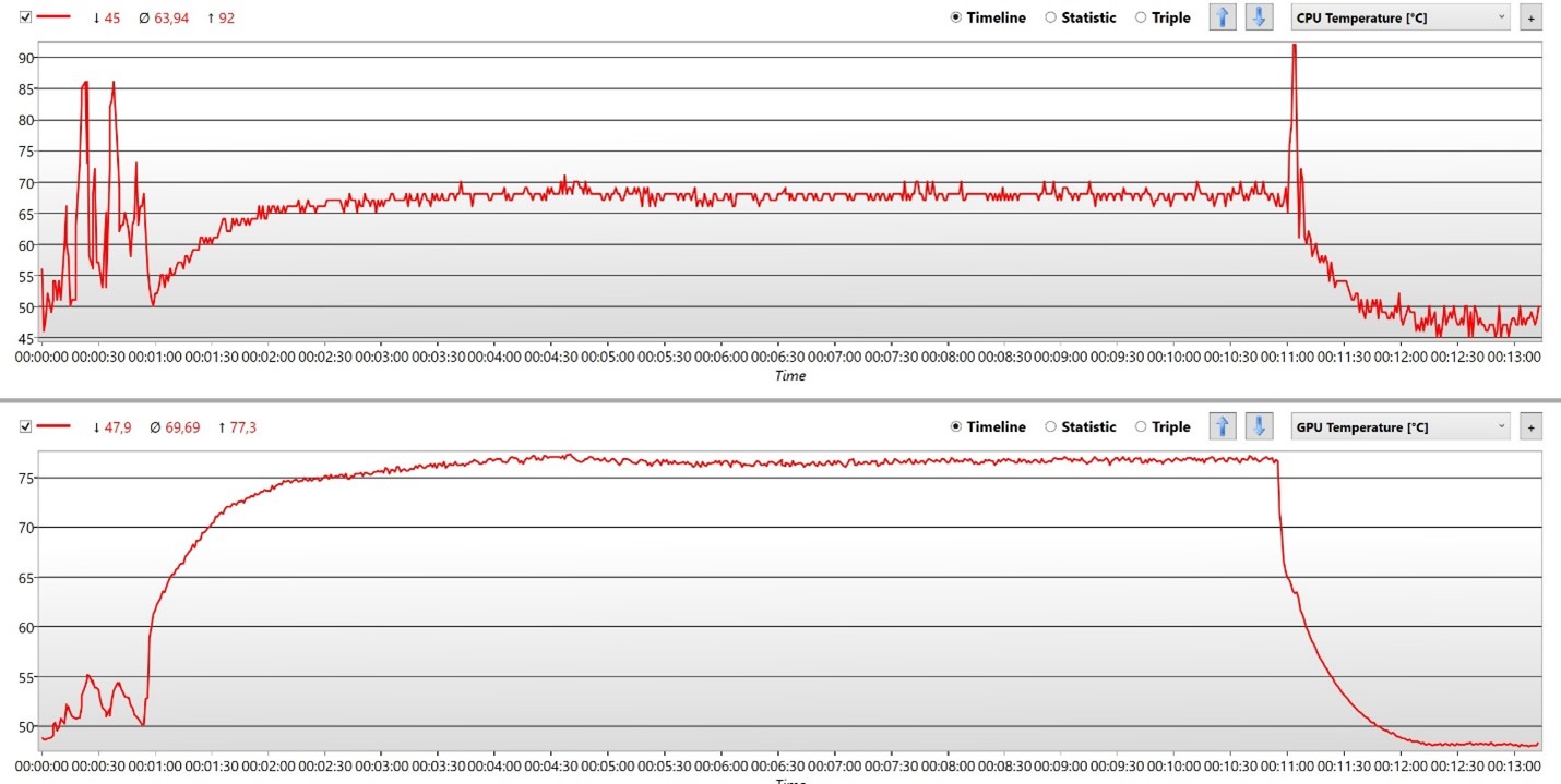 Berkat ROG Intelligent Cooling, ROG Zephyrus M16 (GU603Z) dapat berjalan sangat stabil. Pada pengujian stress test menggunakan 3DMark Fire Strike sebanyak 20 kali loop, ROG Zephyrus M16 (GU603Z) mampu menahan suhu operasional pada rata-rata tak lebih dari 70 derajat Celcius. Angka tersebut tentu tergolong sangat baik apalagi pada sebuah laptop gaming powerful dengan bodi yang sangat ringkas.