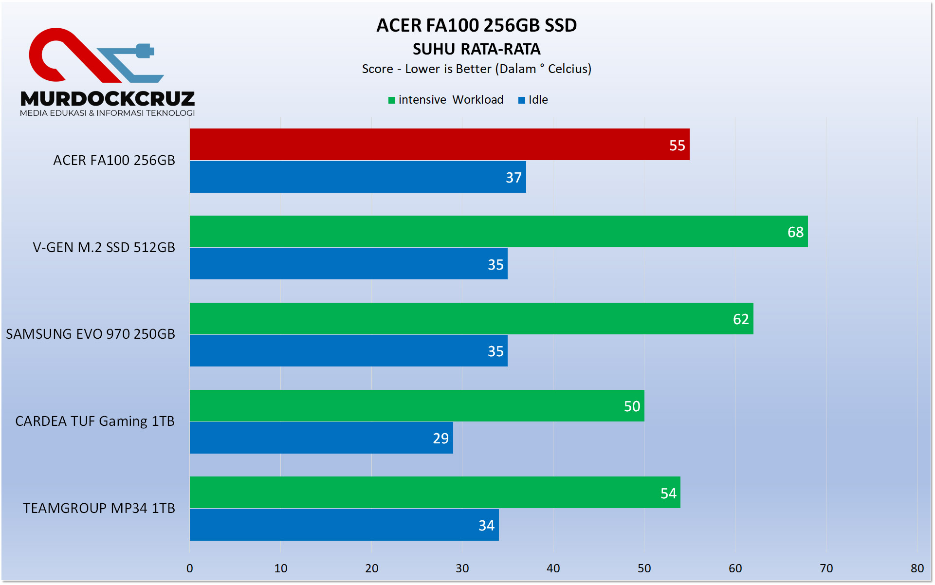 Kalo Suhu sih sangat aman. Idle masih dibawah 40° dan saat sedang bekerja masih dibawah 60° Celsius. Jadi SSD ini sih aman buat pemakaian jangka panjang, bahkan dalam beban intensif sekalipun. Meskipun itu bisa berbeda jika kondisi ruangan cukup panas.