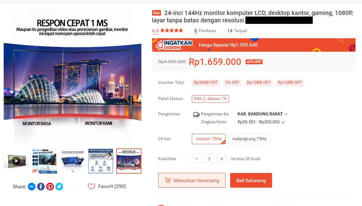 Nah, apa yang perlu dicatat dan diteliti, deskripsi bisa berbeda dengan judul produk. Contoh, kami mendapatkan sebuah monitor gaming di salah satu marketplace populer, dimana dalam judul tercantum monitor gaming 144Hz dengan ukuran 24 Inch. Harga cukup menggiurkan di kisaran 1.6 jutaan.