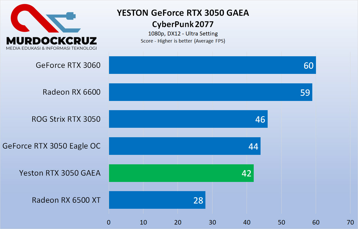Terakhir itu ada Cyberpunk 2077. Game demanding ini pake RTX 3050 Cuma dapet fps rata-rata 42. Masih nyaman, tapi seting dalam game bisa dirubah kalo pengen dapet FPS lebih baik.