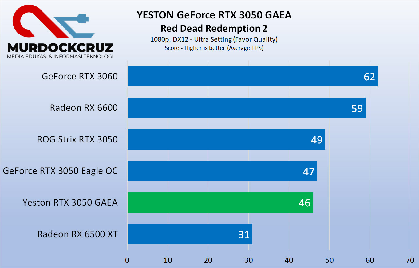 Sedangkan di game Red Dead Redemption 2, FPS rata-rata dapet 46. Hampir sama dengan seri Eagle yang dulu sempet di bahas.
