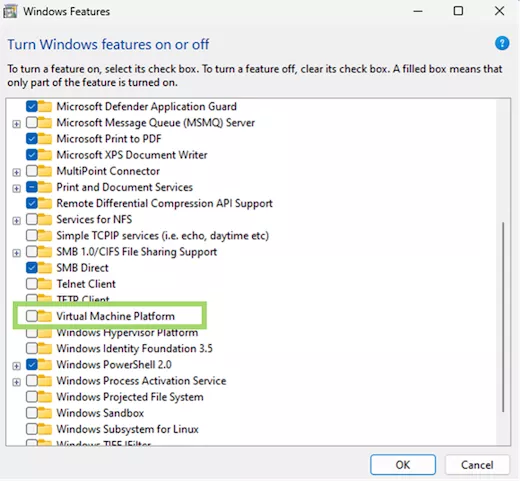 Tips kedua yang diberikan adalah menonaktifkan Virtual Machine Platform. Tugas Platform Mesin Virtual adalah untuk “menyediakan pekerjaan inti mesin virtual untuk Windows.” Fitur ini juga tidak diaktifkan secara otomatis kecuali pengguna baru saja menginstal Windows 11.