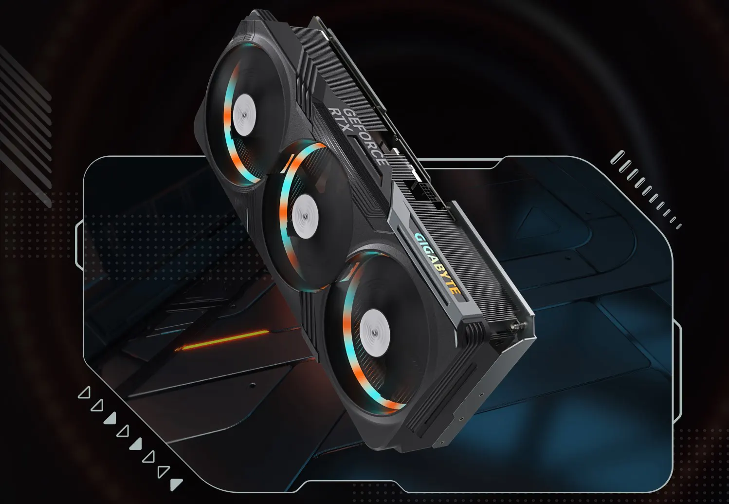 AORUS juga menghadirkan kembali versi upgrade dari lampu RGB triple-ring, RGB Halo. Tampilan LCD di sisi kartu grafis AORUS MASTER memberi pengguna opsi lain untuk mempersonalisasi kartu mereka dengan teks, gambar, atau gif.