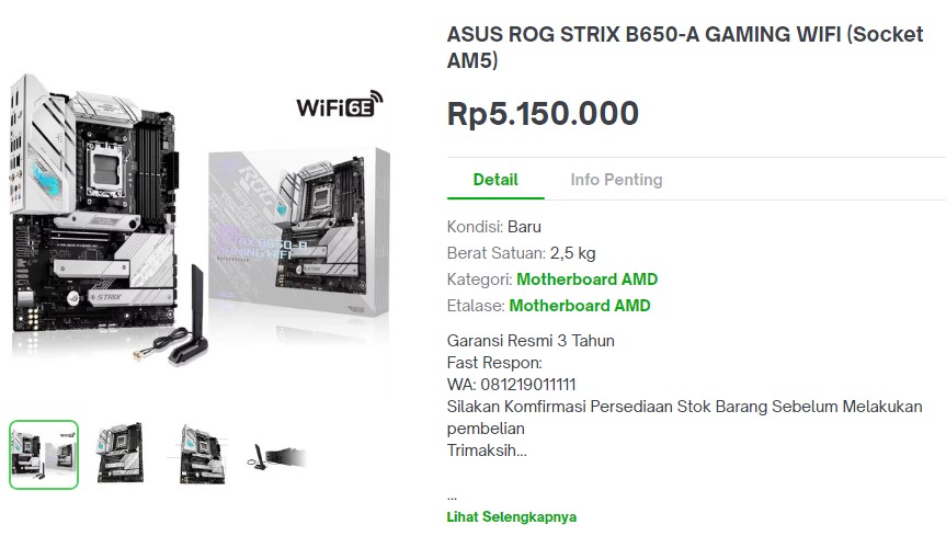 Sebagai contoh, ASUS datang dengan beberapa pilihan antara ROG Strix B650 A-Gaming , TUF Gaming B650M Plus Wifi atau seri Prime B650M A WiFi. Kisaran harga terendah sekitar 3 jutaan, pilihan tertinggi sementara ini di angka 5 jutaan.