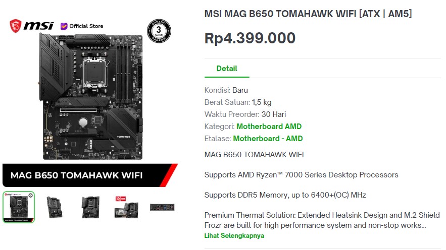 MSI sejauh ini hanya memberikan beberapa opsi, salah satunya MAG B650 Tomahawk WiFi yang punya harga sekitar 4.3 jutaan lebih. Sedangkan GIGABYTE sementara ini punya opsi AORUS Elite AX yang dibandrol sekitar 4.9 jutaan.