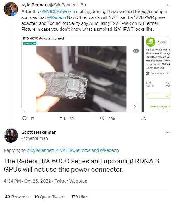 Kasus melelehnya konektor 12VHPWR bawaan RTX 4090 yang diungkap baru-baru ini dari seorang reddit tampaknya dijadikan momentum tersendiri buat AMD saat akan merilis GPU terbaru RDNA 3.