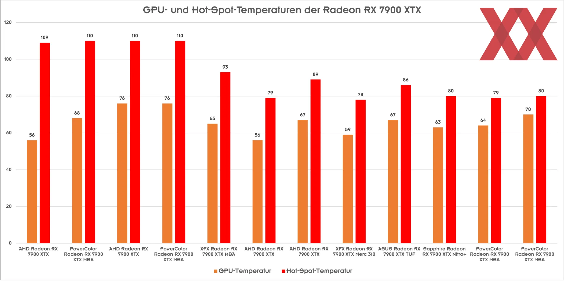 Laporan tersebut menunjukan suhu dari beberapa kartu referensi AMD RX 7900 XTX dan lebih dari satu menunjukkan hotspot 110C. Kesenjangan termal antara suhu rata-rata GPU dan suhu hotspot juga tinggi, hingga 54 Celcius di ujung atas.