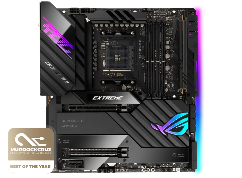 Buat motherboard, ASUS ROG CROSSHAIR VIII EXTREME jadi solusi absolut buat mereka yang masih tertarik dengan platform AM4. Mobo ini punya fitur paling mewah, entah dari konektivitas yang dibawa, potensi kinerja juga bakal lebih powerful. Tapi sekali lagi, pilihan ini lebih cocok buat kalangan sultan yang enggak terbatas dengan money.