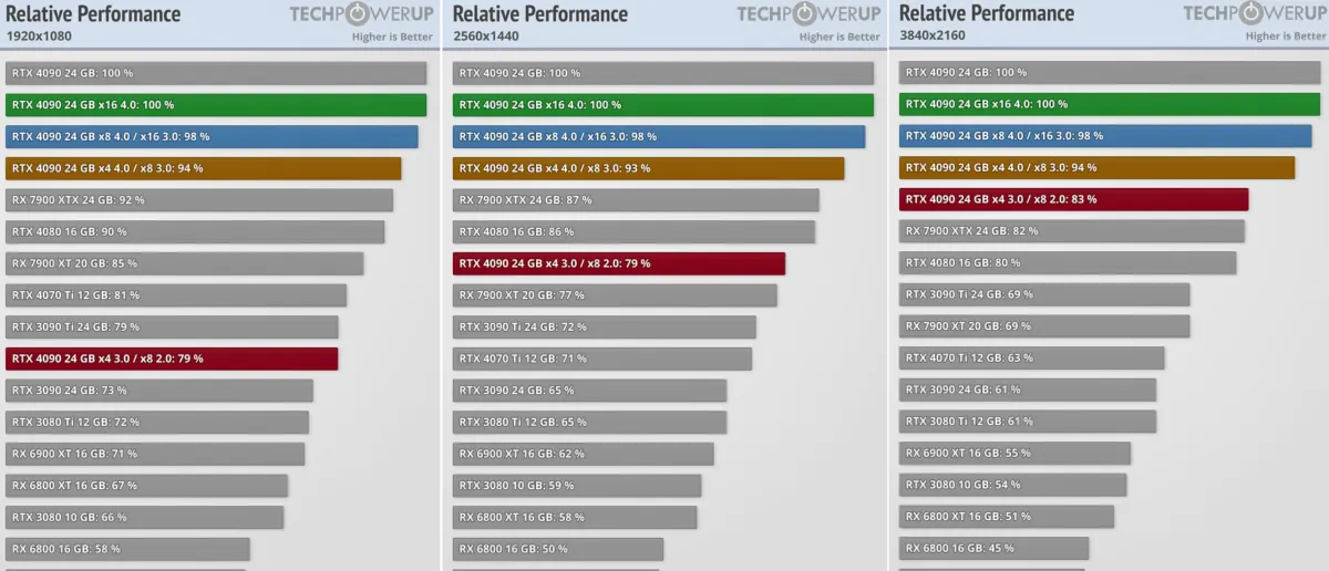 Kabar baik buat kalian yang mungkin saja akan memakai GPU RTX 4090 di motherboard lama berbasis PCIe 3.0 atau bahkan di jalur PCIe x8, Techpowerup (TPU) baru saja menunjukan bagaimana komparasi jelasnya.